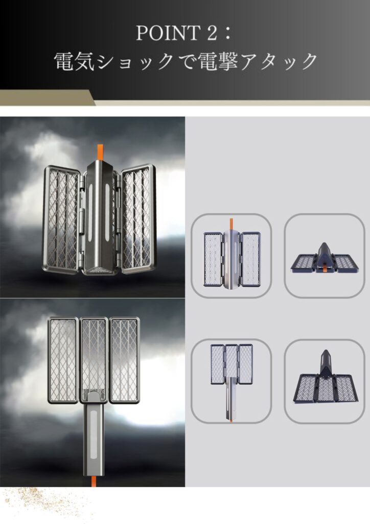 電気ショックネットは前後2層の保護ネットで包み込まれており、電源オンの状態でネットに触れた場合でも感電を防止します。