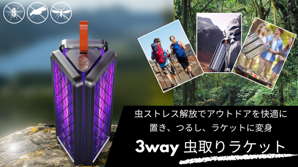 本格的なシーズンが到来する前の早めの虫対策として、殺虫剤や煙を使わず、使う場所も選ばない3way虫取りラケットで、ストレスから解放された快適なアウトドアをお楽しみください!!