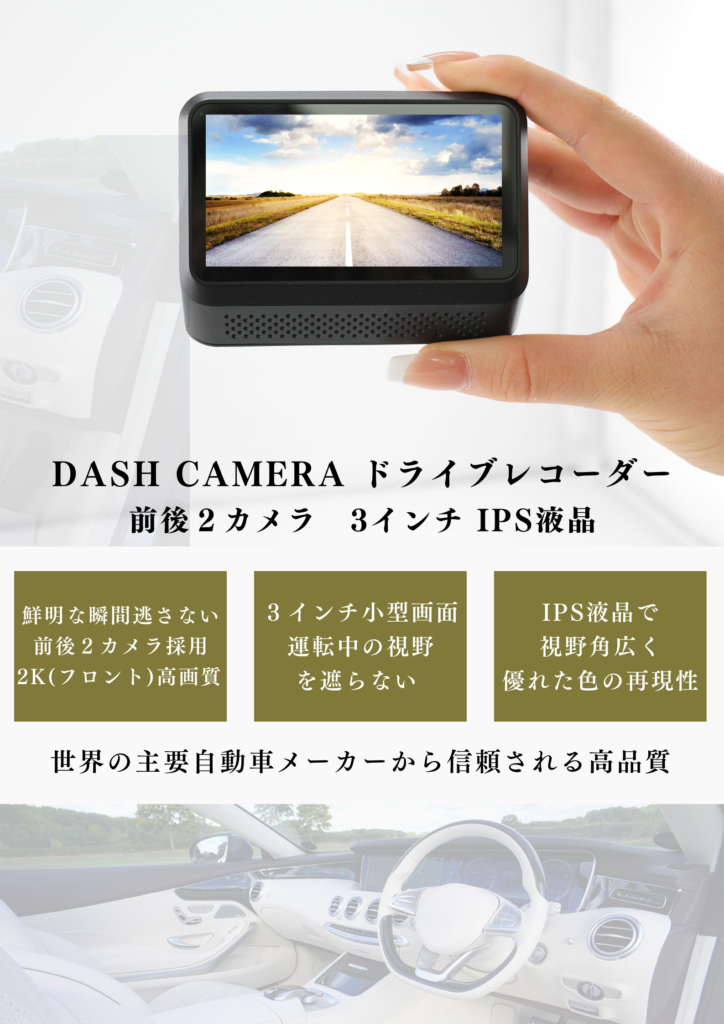■どんな瞬間も見逃さない!前後2カメラIPS液晶画面ドライブレコーダーで、あなたの車をアップデート!