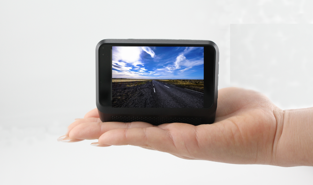 手の中にすっぽり収まる3インチ。小ぶりなサイズはフロントガラスに取り付けても、運転中の視界を遮らず、快適な視界を確保