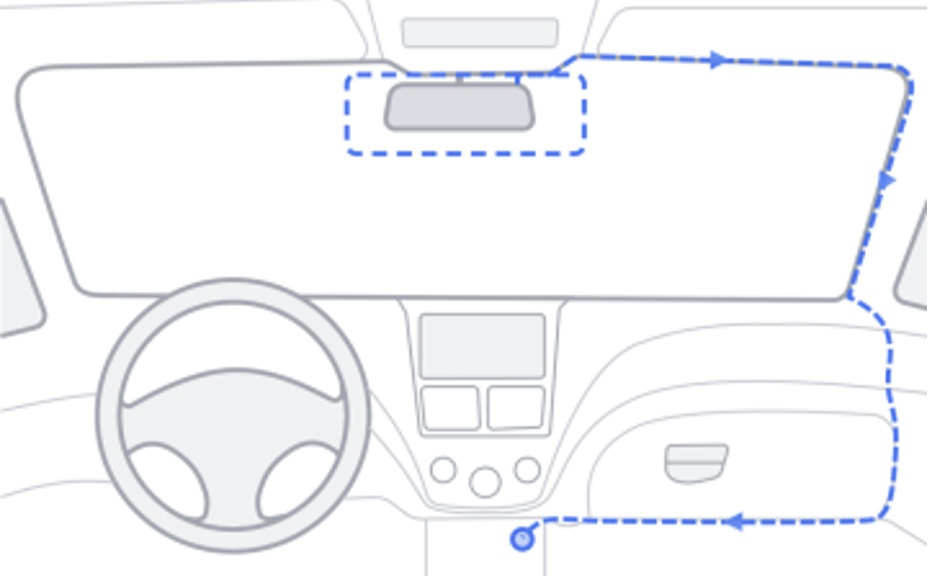 3. フロントカメラ、リアカメラの設置位置を確認し、付属の両面テープで取り付け、配線